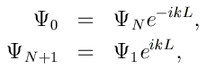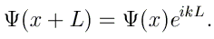 D'après le théorème de Bloch, la fonction d'onde peut s'exprimer comme Ψ(x)=u(x) eikx, où u(x+L)=u(x)