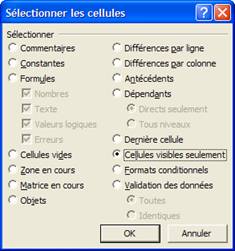 Sélection des cellules visibles