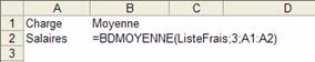 en B2 on calcule la moyenne des salaires de notre liste, ce qui permet d'obtenir la valeur 8 373,66