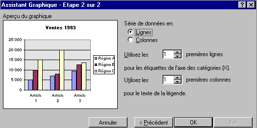 - Choisir l'assistant graphique, bouton Suivant et cocher le bouton Série de données en : Ligne, puis valider.