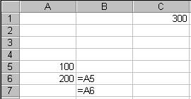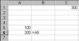 Lorsqu'on crée une formule, les références de cellules ou de plages de cellules sont généralement basées sur leur position par rapport à la cellule qui contient la formule. Dans l'exemple suivant (Figure 1), la cellule B6 contient la formule =A5; Excel recherche la valeur située une cellule au-dessus et une cellule à gauche de la cellule B6. Il s'agit là d'une référence relative.