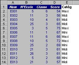 - NUM, N°ECOLE et CLASSE représentent le numéro de l'étudiant, de son école et de sa classe,