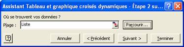 Ainsi, dans notre exemple (feuille "Tcd 1"), on définit la plage "Liste" comme étant :