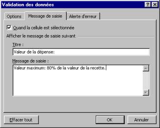 - Introduire un texte dans la zone TITRE pour afficher le titre de la boîte de dialogue.